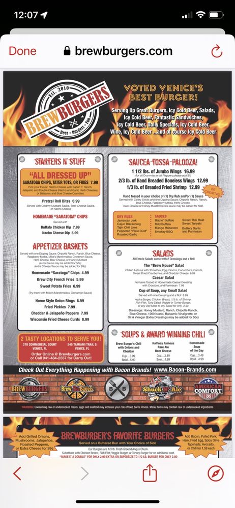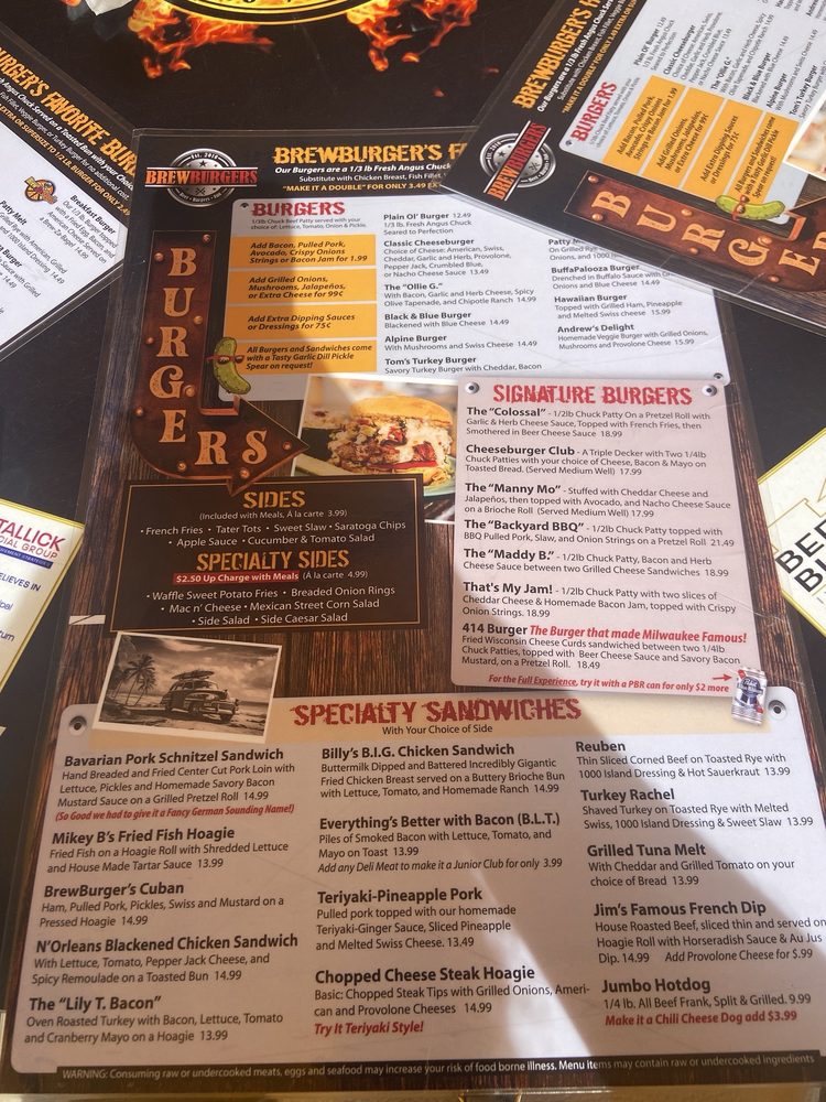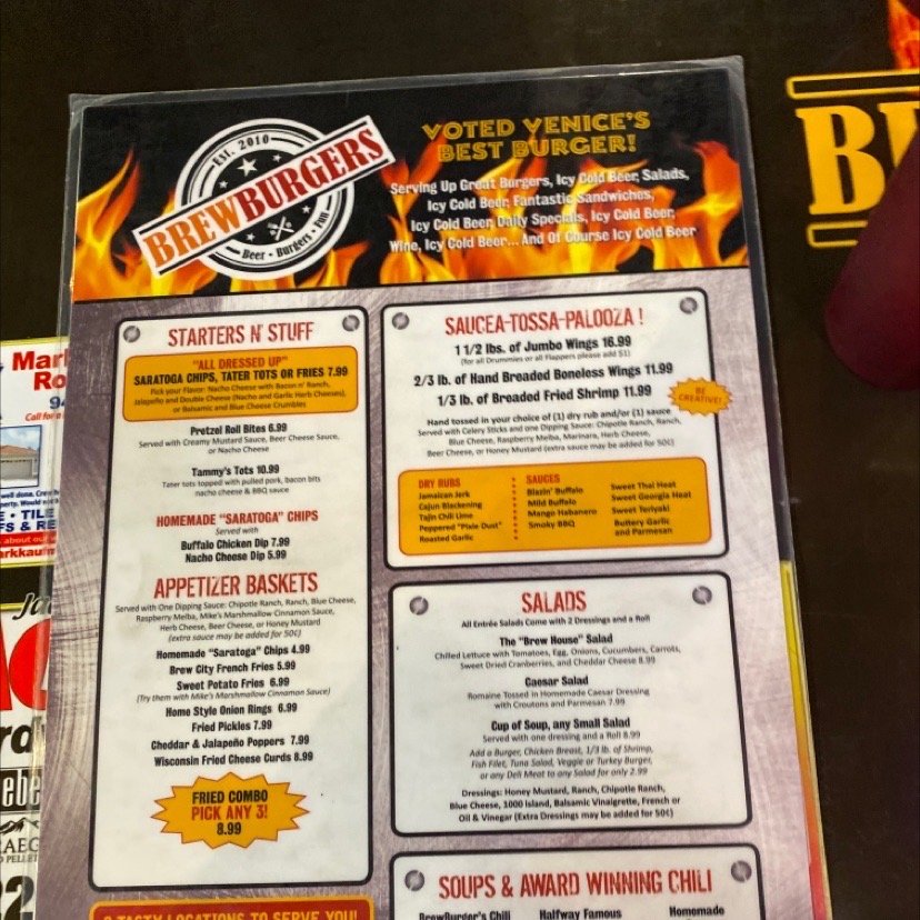 Introducing BrewBurgers Pub and Grill, a cozy spot offering American pub cuisine with a focus on burgers. Located in Venice, FL, this restaurant is wheelchair accessible, offers outdoor seating, and caters to everyone with vegan and vegetarian options. With a diverse menu that includes starters like cheese curds and a variety of burgers like the Ollie G with bacon, garlic, and chipotle ranch, BrewBurgers has something for every taste. Customers rave about the flavorful dishes, generous portion sizes, and friendly staff. Whether you're craving a classic cheeseburger or a unique veggie burger, BrewBurgers Pub and Grill is the place to satisfy your hunger cravings. Don't miss out on their sweet potato fries or schnitzel sandwich, and enjoy a cold brew with good company in a bustling yet inviting atmosphere. Experience the best of pub dining at BrewBurgers!